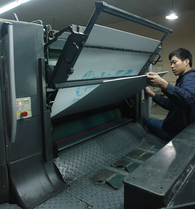 另外,網(wǎng)點出現(xiàn)空心,這種情況有如下幾個原因。(1)冬天由于室內(nèi)溫度低,相對濕度小,操作時,印版臺的制冷調(diào)得過低,油墨黏度大,油墨在版上由于過冷而凝固,橡皮布在轉(zhuǎn)移油墨時,將印版上的墨拉起,四周被拉起而中心縮回到印版上,就造成了網(wǎng)點中心有小白點。(2)PS版粗糙。(3)壓力不當?shù)取=鉀Q辦法是:(1)可適當提高版臺的溫度。(2)在油墨內(nèi)加5%撤淡劑,使油墨滋潤而流動度適當。(3)要選用砂目均勻、粗細深淺適度的PS版材。